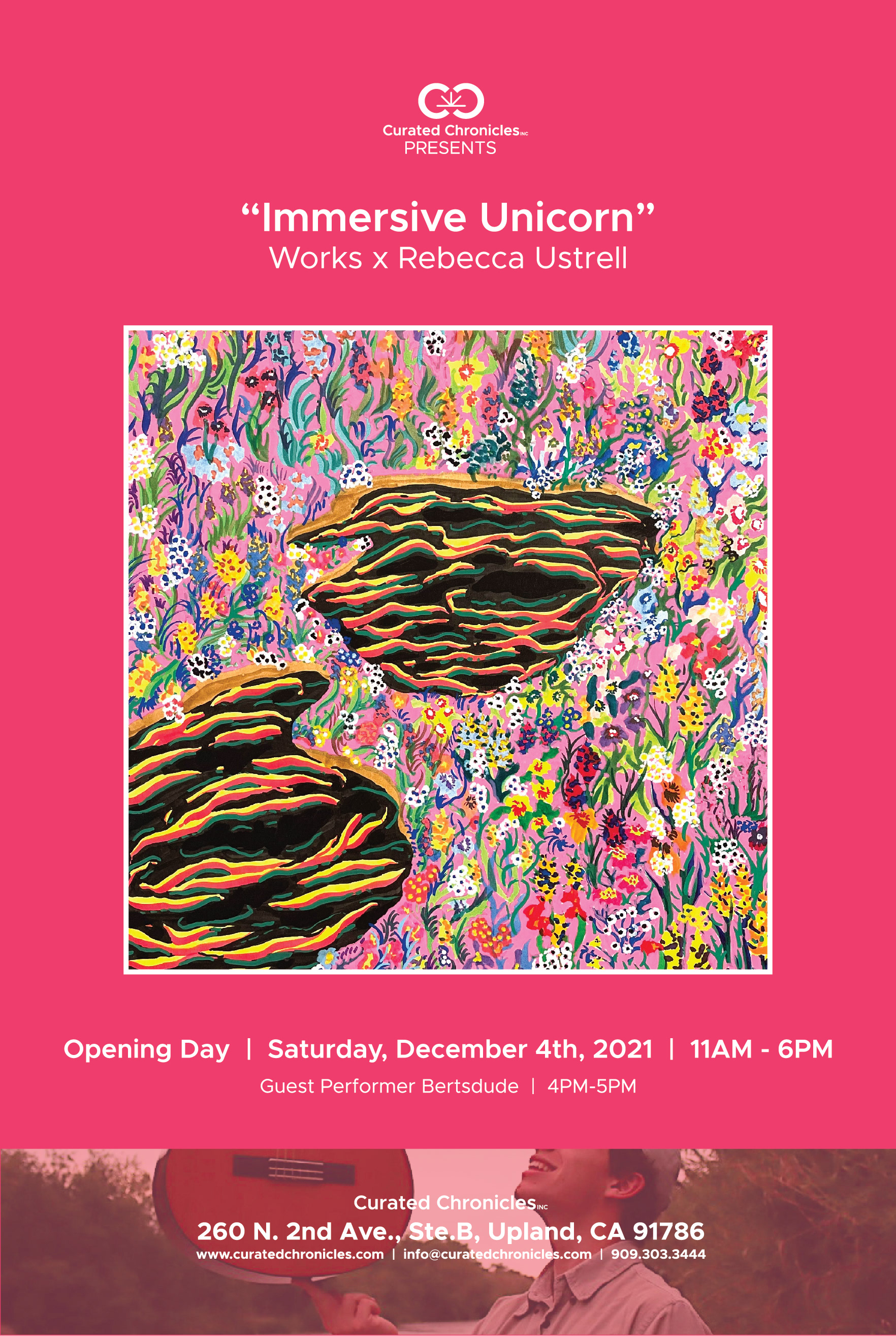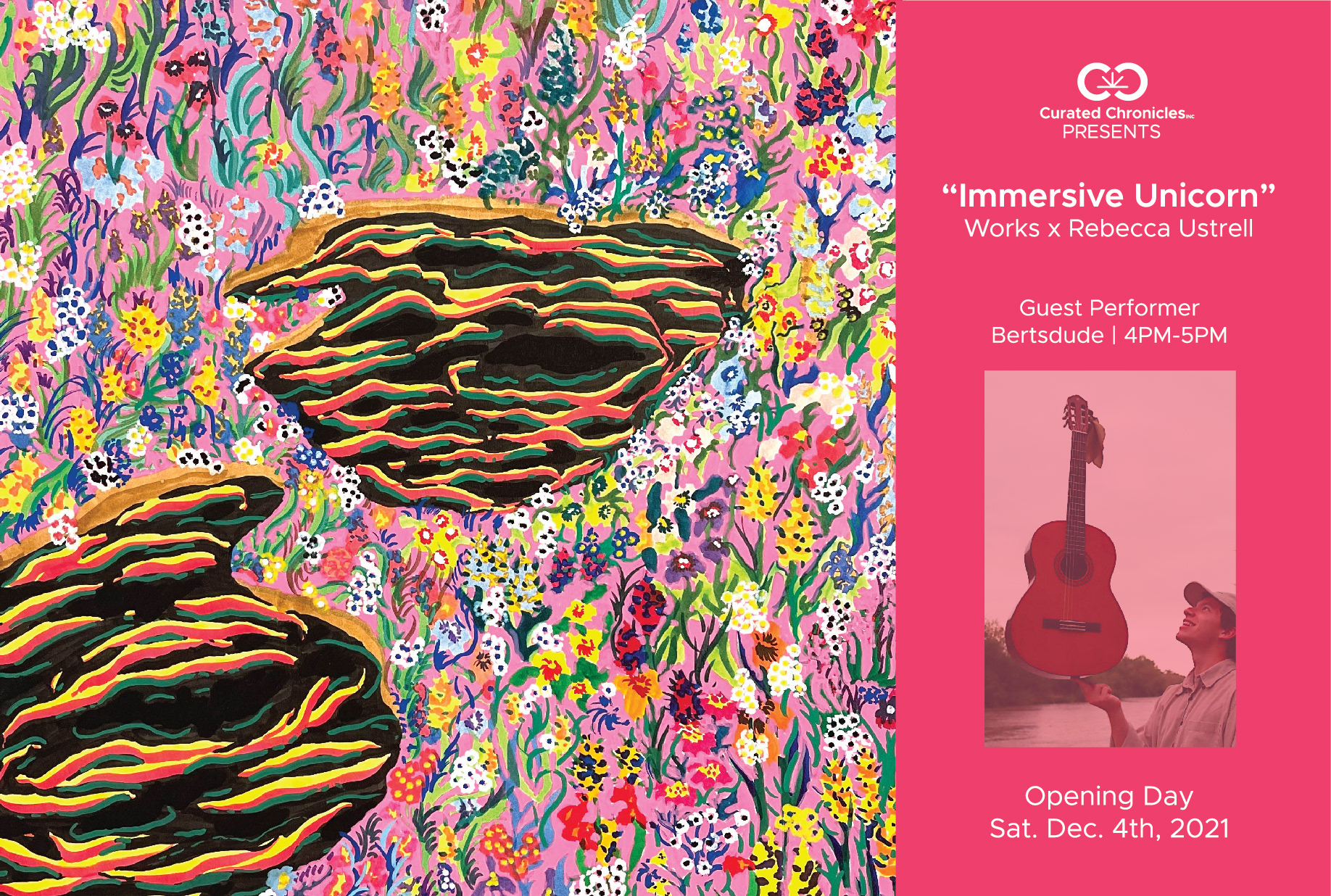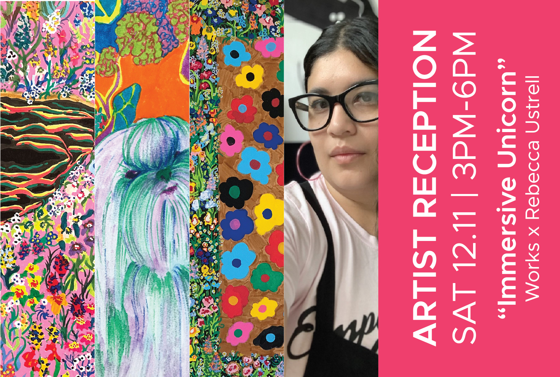 “Immersive Unicorn, a new collection of illustrations and tapestries diving into the strange and beautiful world of botany and alien landscapes. This collection is the first phase of an ongoing homage to The Unicorn Tapestries, woven around 1500, which celebrate a world of wonders with the unicorn at its very center. Although absent in this collection, the implied unicorn is left to the spectator to identify within themselves. I’ll reveal one new work on the night of the reception (never before seen), and I’ll have a limited run of prints available for $7/each.